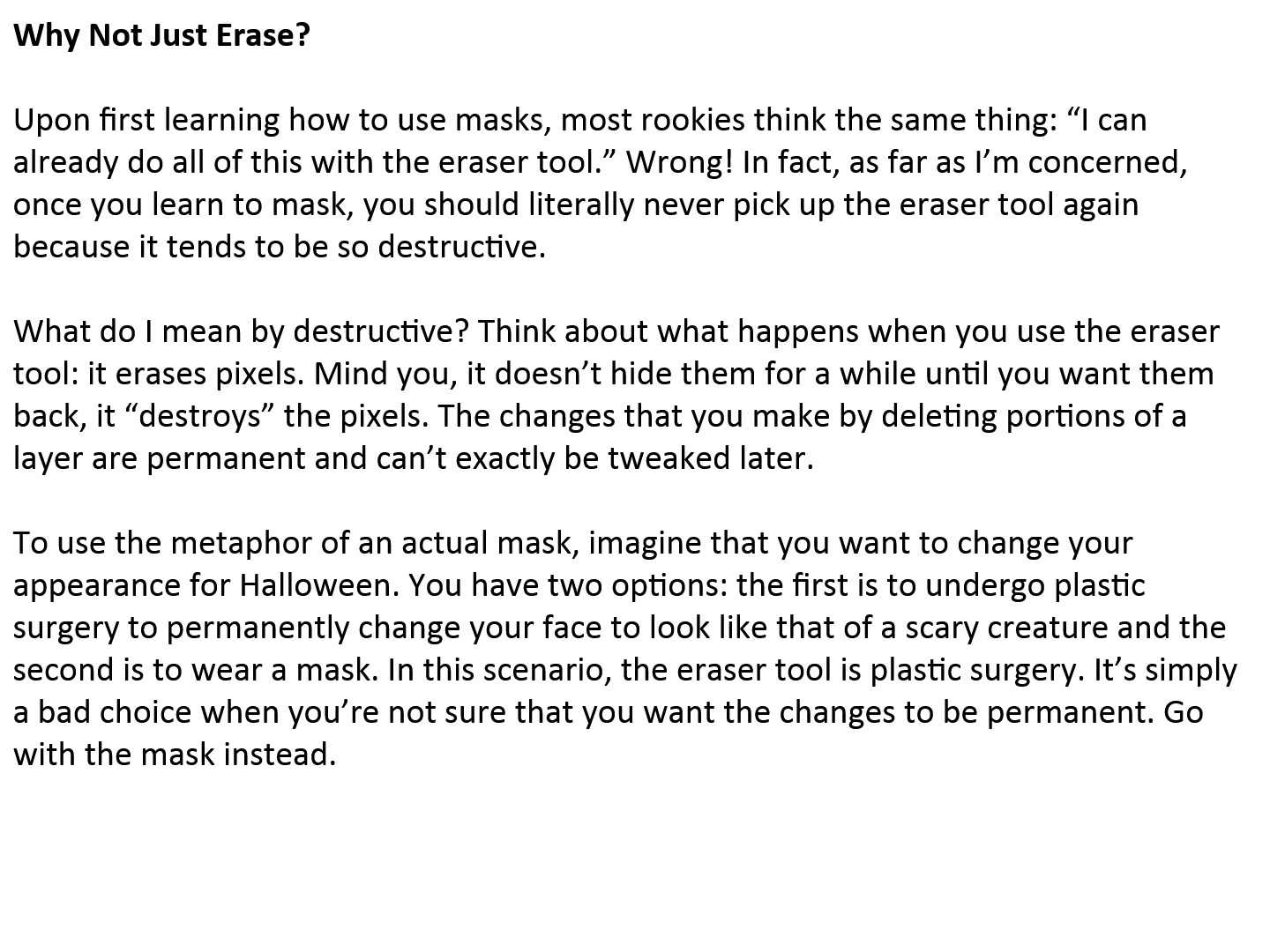 The Masking Philosophy: Replacing the destructive Eraser tool with Layer Masks to hide or reveal content while preserving every original pixel.